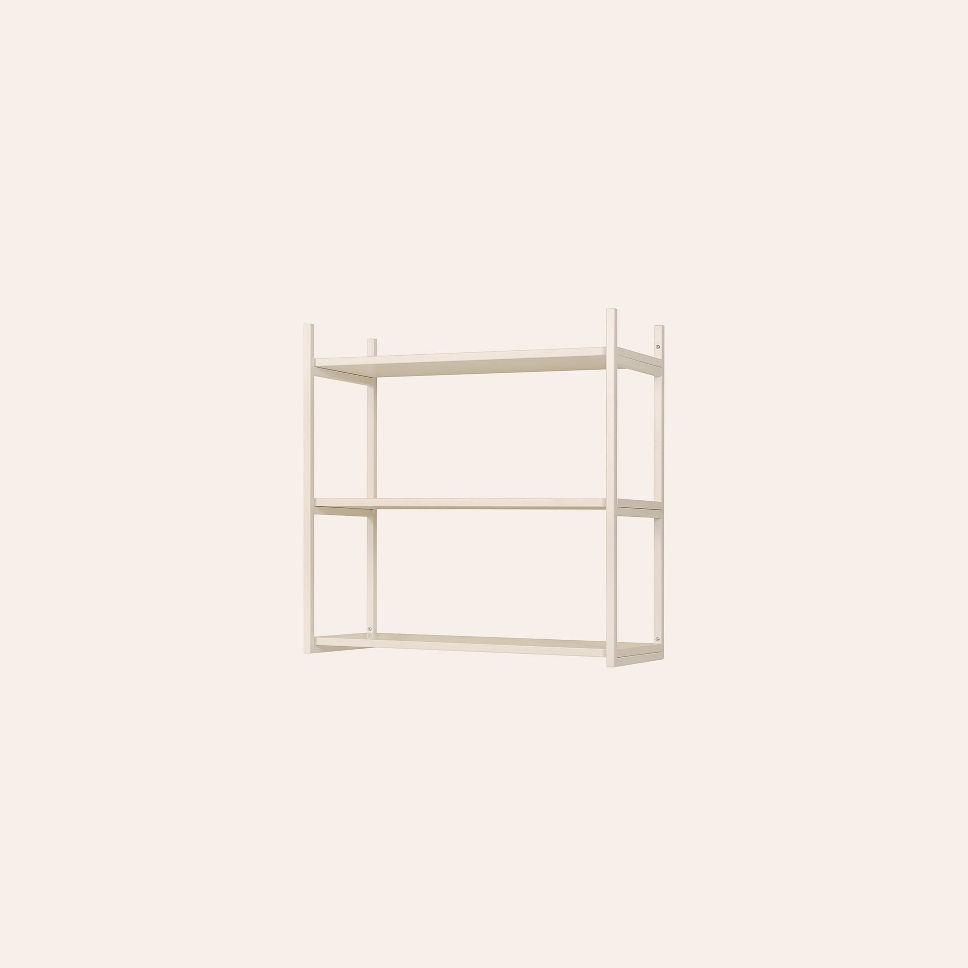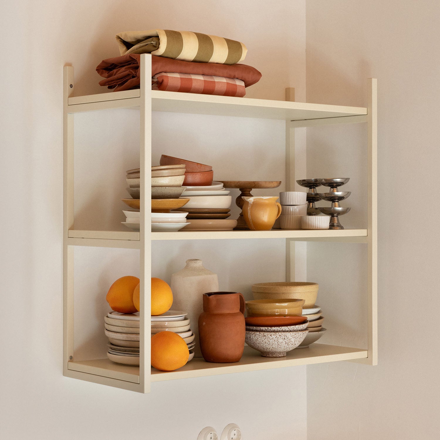Wandhängendes offenes Regal in der Farbe Off-White, perfekt für Küche, Wohnzimmer oder Kinderzimmer. Ergänzen Sie es mit einer Kleiderstange, um alles von Küchenutensilien bis hin zu Kleidung aufzuhängen, eine spielerische Lösung für praktische Aufbewahrung. Diese Kombination ist 80 cm breit.