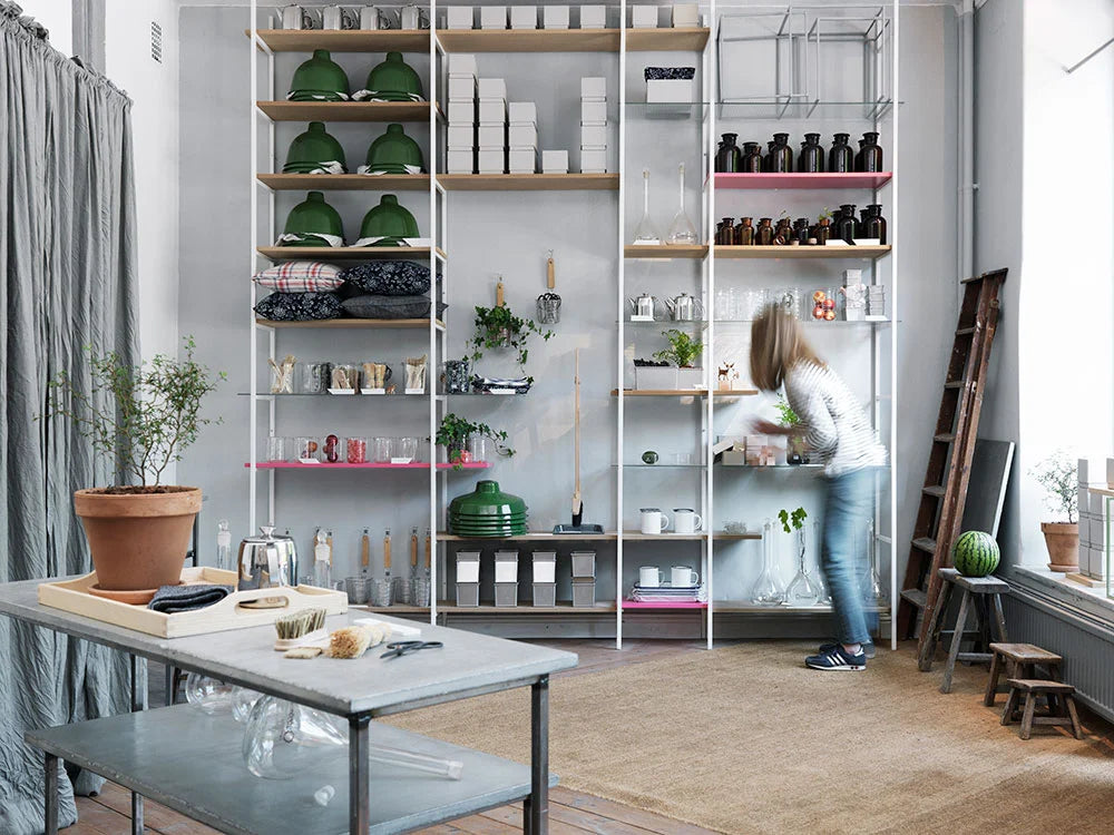 The Portal shelf system was born in our first store on Sveavägen in Stockholm. TÔNN was then called Betonggruvan and we made the shelf to be able to show the products that we used to sell. The shelf was easy to assemble, change and rebuild. And it did a good job. So good in fact that more and more customers started asking if the shelf was for sale. After some time drawing, designing and developing, Portal finally became a product! Since then, we have added more combinations, heights, colors and accessories. The shelf is now sold and shipped all over the world and thanks to our customers’ feedback and wishes, we continue to develop it together.