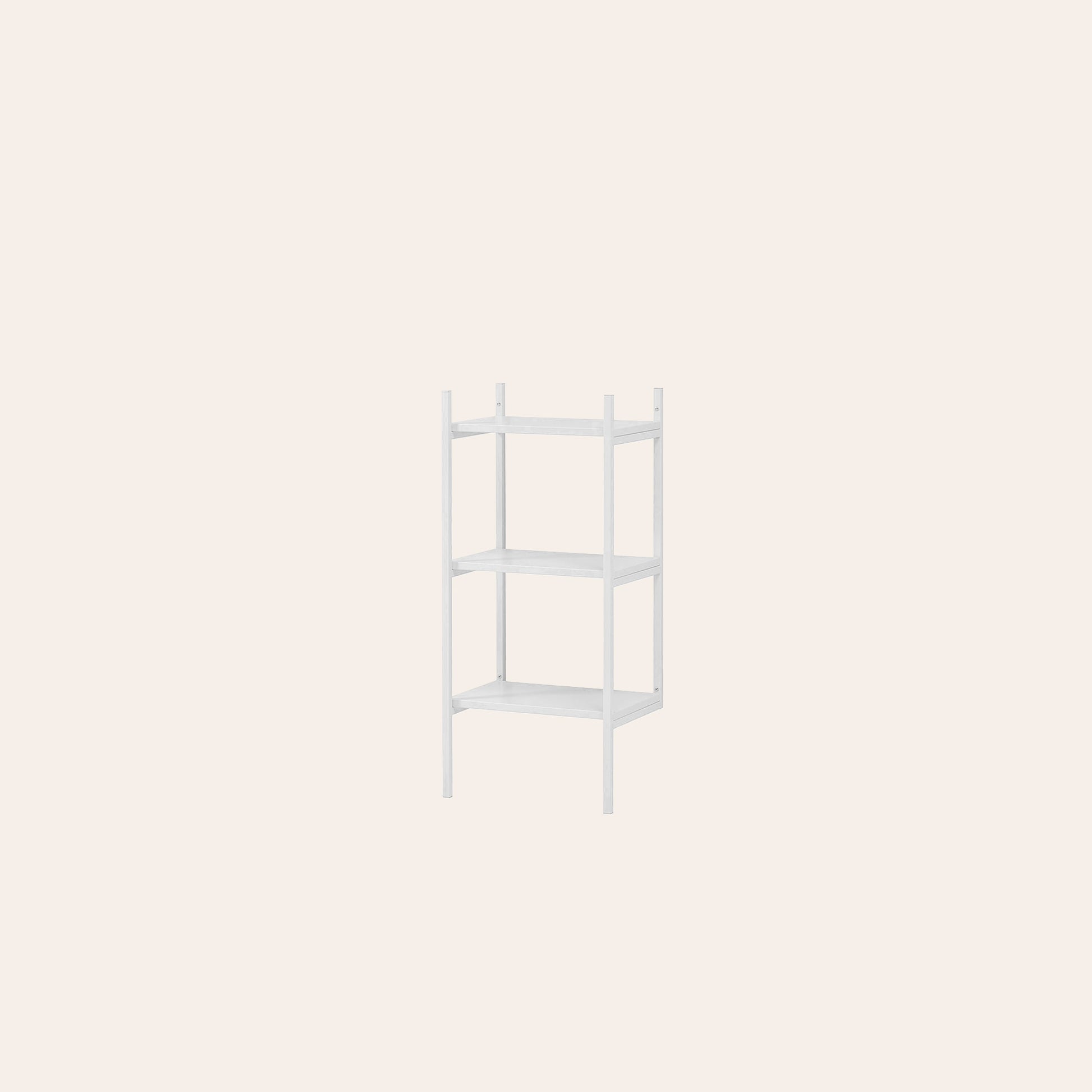Small bookshelf or sideboard in white – fits in any room of your home. The low height makes it perfect for a lamp, a few decorative objects, or a stack of art books. This combination is 45 cm wide.