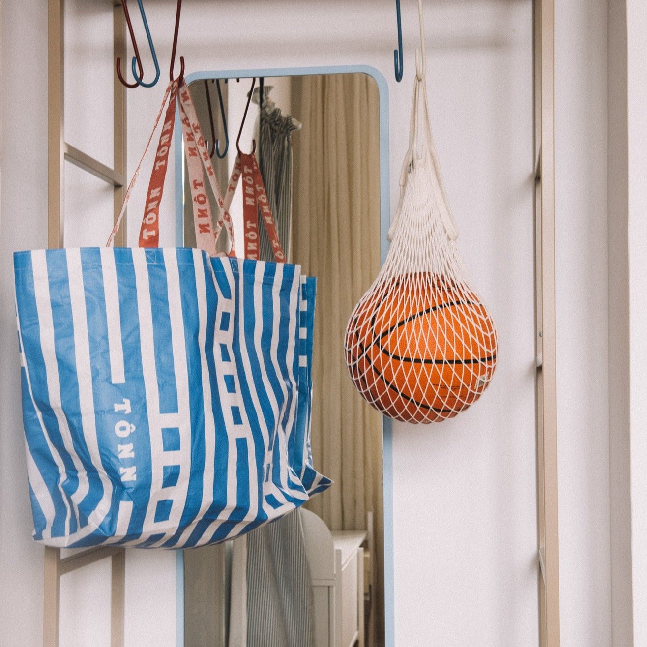 The Pang Tall mirror is a long narrow full-body mirror with soft rounded corners. Choose between the colors camel or green. The mirror fits nicely in the bedroom or in the hallway.
