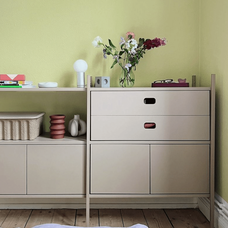 The Portal shelving system is based on shelf ladders and shelves that you can combine as you like. The shelf ladders are made of powder-coated steel and come in different colors and heights. All of the heights (237, 101, or 67) can be combined with one another to create a customized shelf that suits your needs. The shelf ladders are all 35 cm deep, and the height between the shelves is always 32 cm.