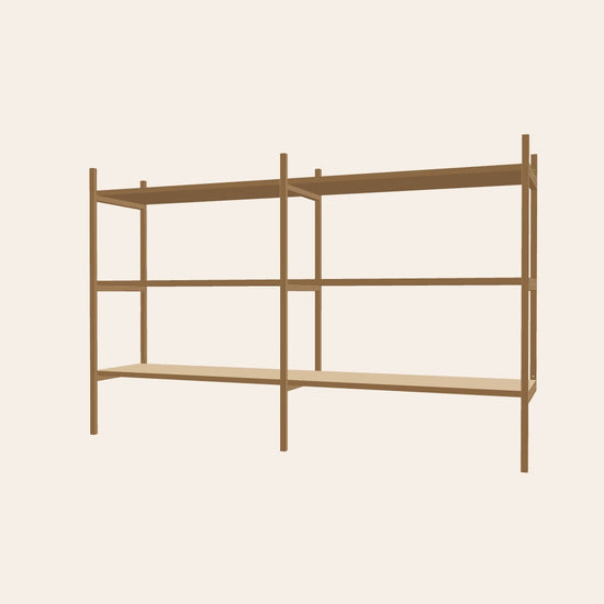 Small bookshelf or sideboard in camel – fits in any room of your home. The low height makes it perfect for a lamp, a few decorative objects, or a stack of art books. This combination is 158 cm wide.