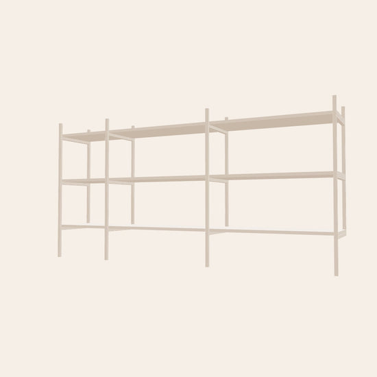 Small bookshelf or sideboard in off-white – fits in any room of your home. The low height makes it perfect for a lamp, a few decorative objects, or a stack of art books. This combination is 201 cm wide.