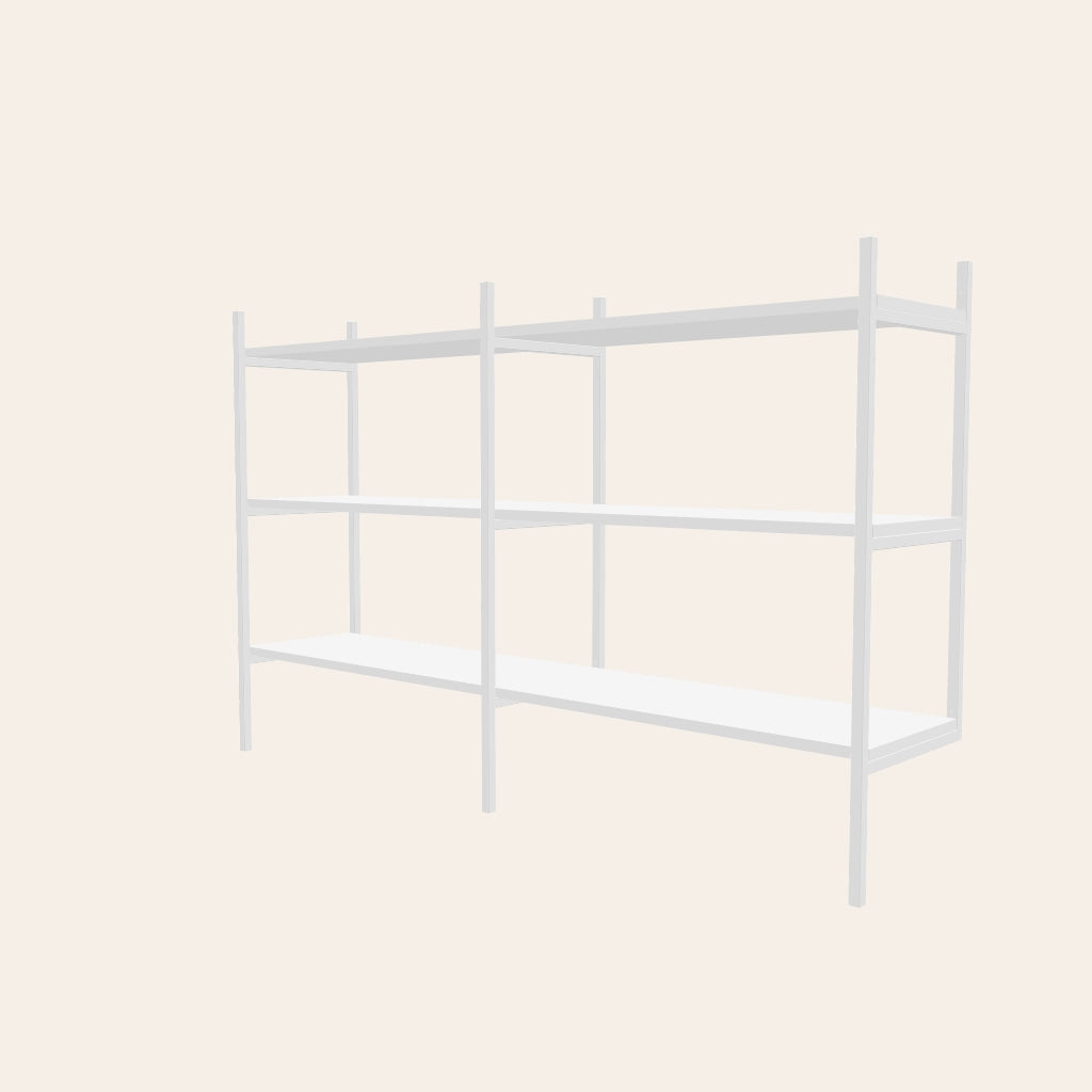 Small bookshelf or sideboard in white – fits in any room of your home. The low height makes it perfect for a lamp, a few decorative objects, or a stack of art books. This combination is 158 cm wide.