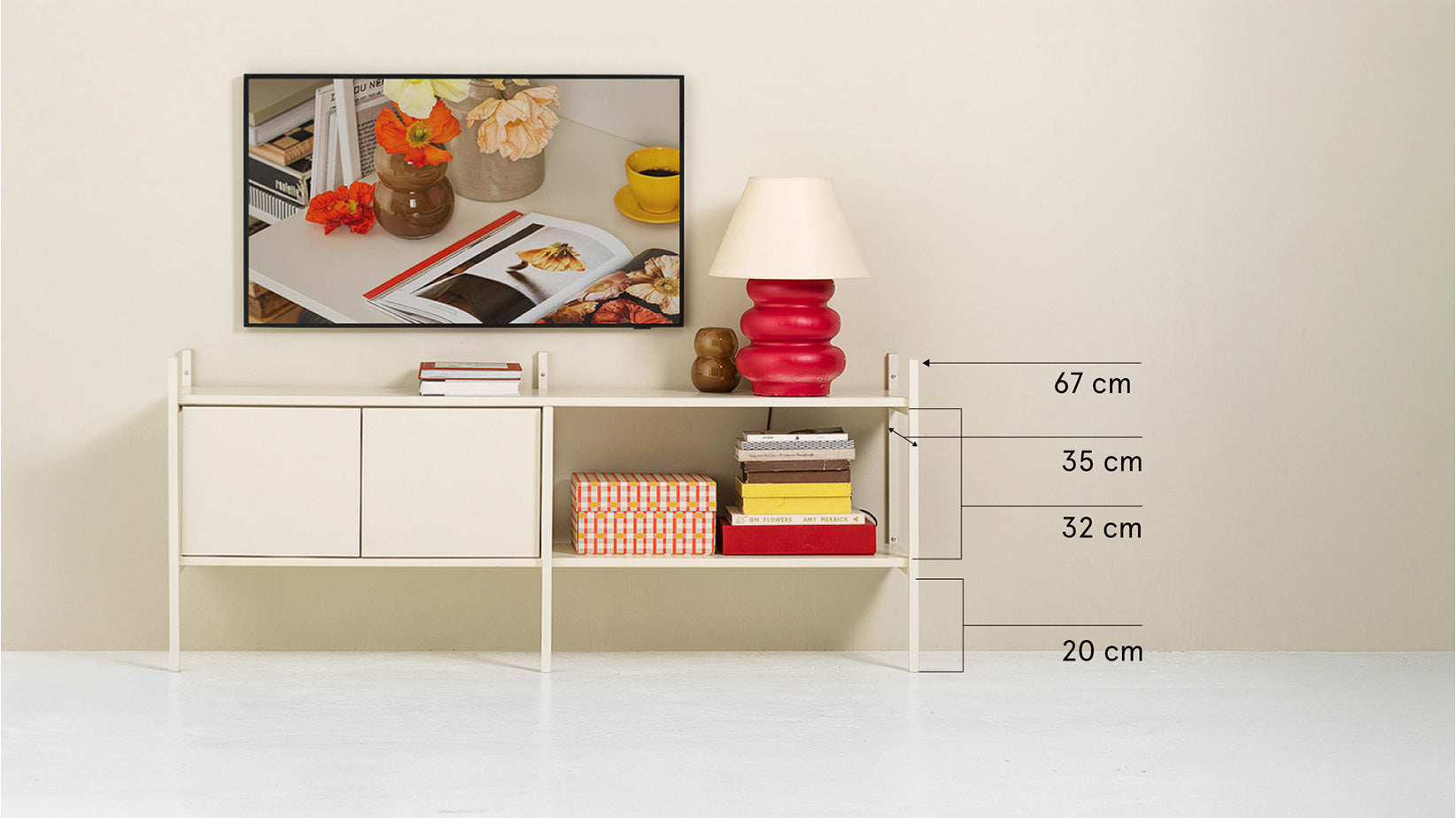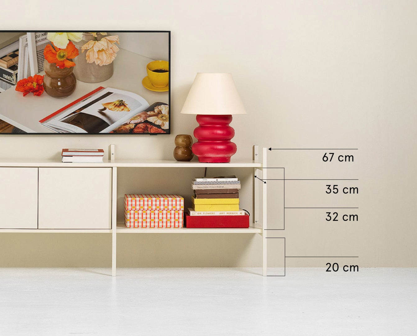 Excellent TV stand in off-white combining function and style. Create space for both your TV and practical storage. A flexible solution that elevates your living room and fits beautifully in a wide range of homes. This combination is 158 cm wide.