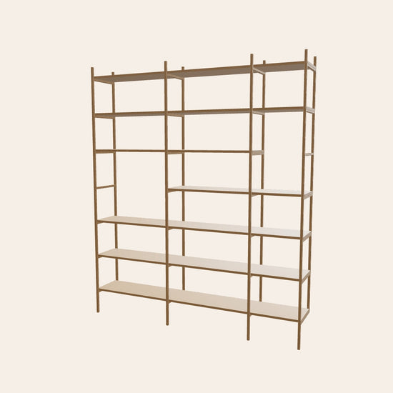 En perfekt bokhylla för ditt vardagsrum i färgen kamel. I de öppna partierna får du plats med en tavla eller en större lampa. Denna kombination är 201 cm bred.