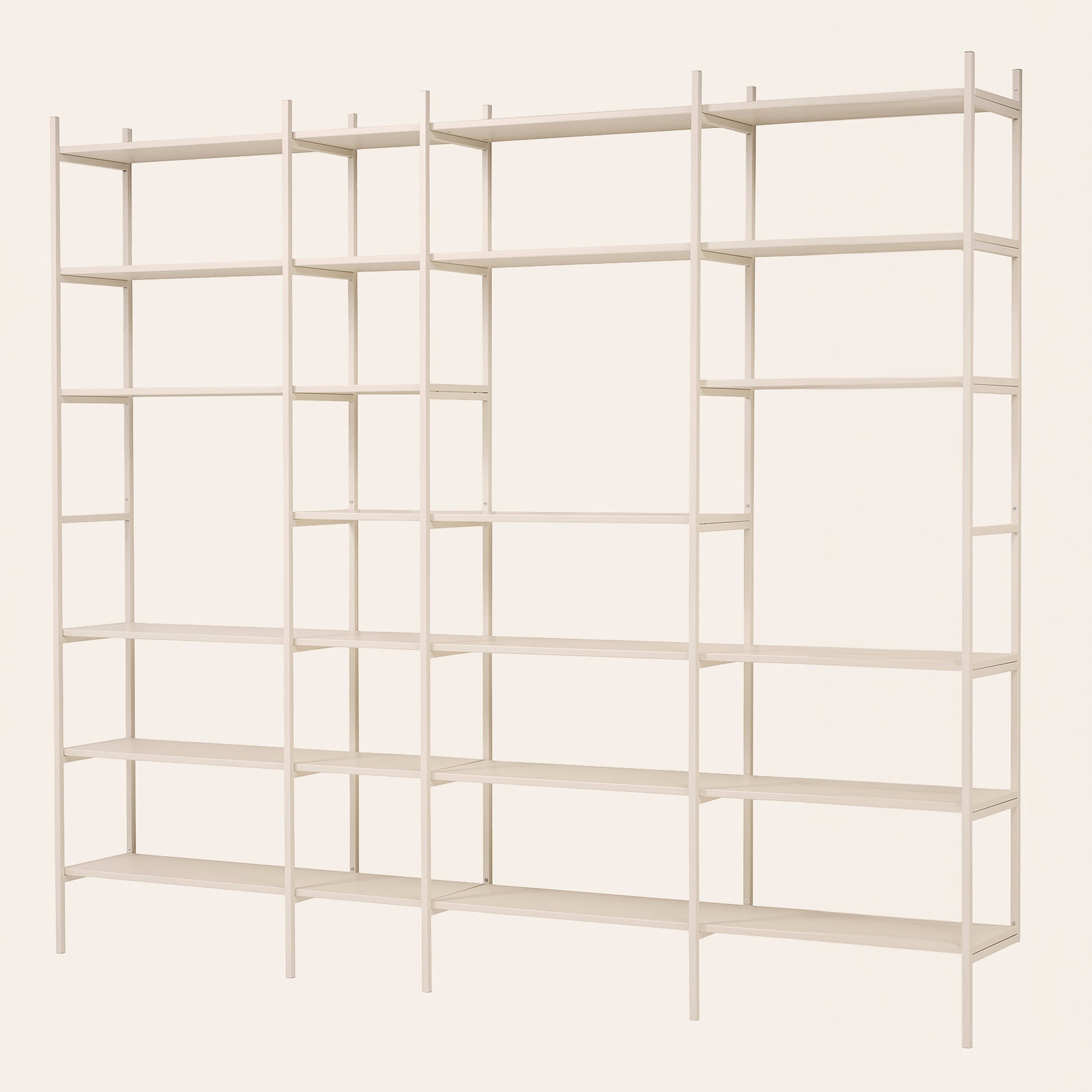 En perfekt bokhylla för ditt vardagsrum i färgen off-white. I de öppna partierna får du plats med en tavla eller en större lampa. Denna kombination är 279 cm bred.