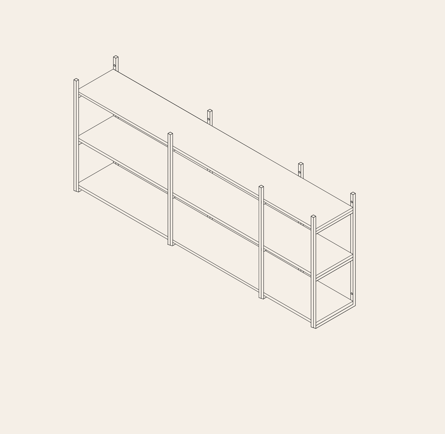 Frida Gustavssons vägghängda Portalhylla. En perfekt hylla för höga golvsocklar som vägghängs på valfri höjd. Bredd på denna variant: 201 cm.