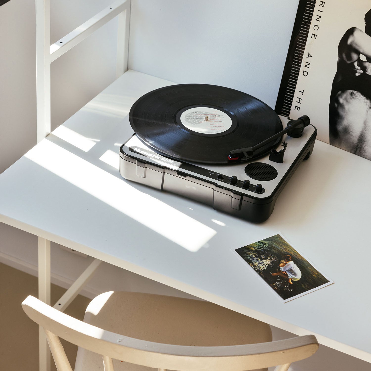 Gör Portal till en skrivbordshylla. Skrivbordet monteras med medföljande beslag i Portalhyllan och passar lika fint i hemmakontoret, barnrummet eller som ett sideboard.