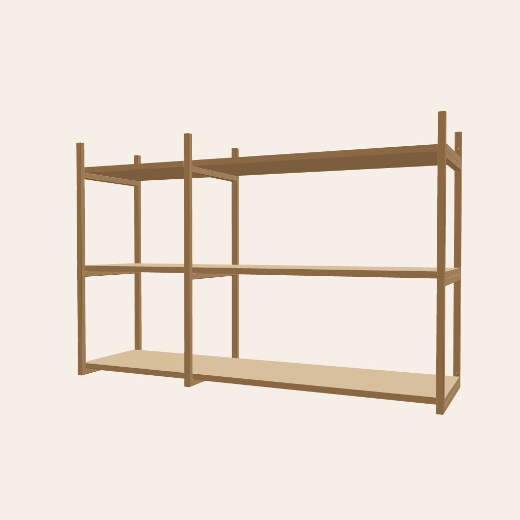 𑇐 Låga hyllgavlar monteras i väggen med två skruvar