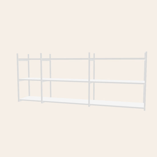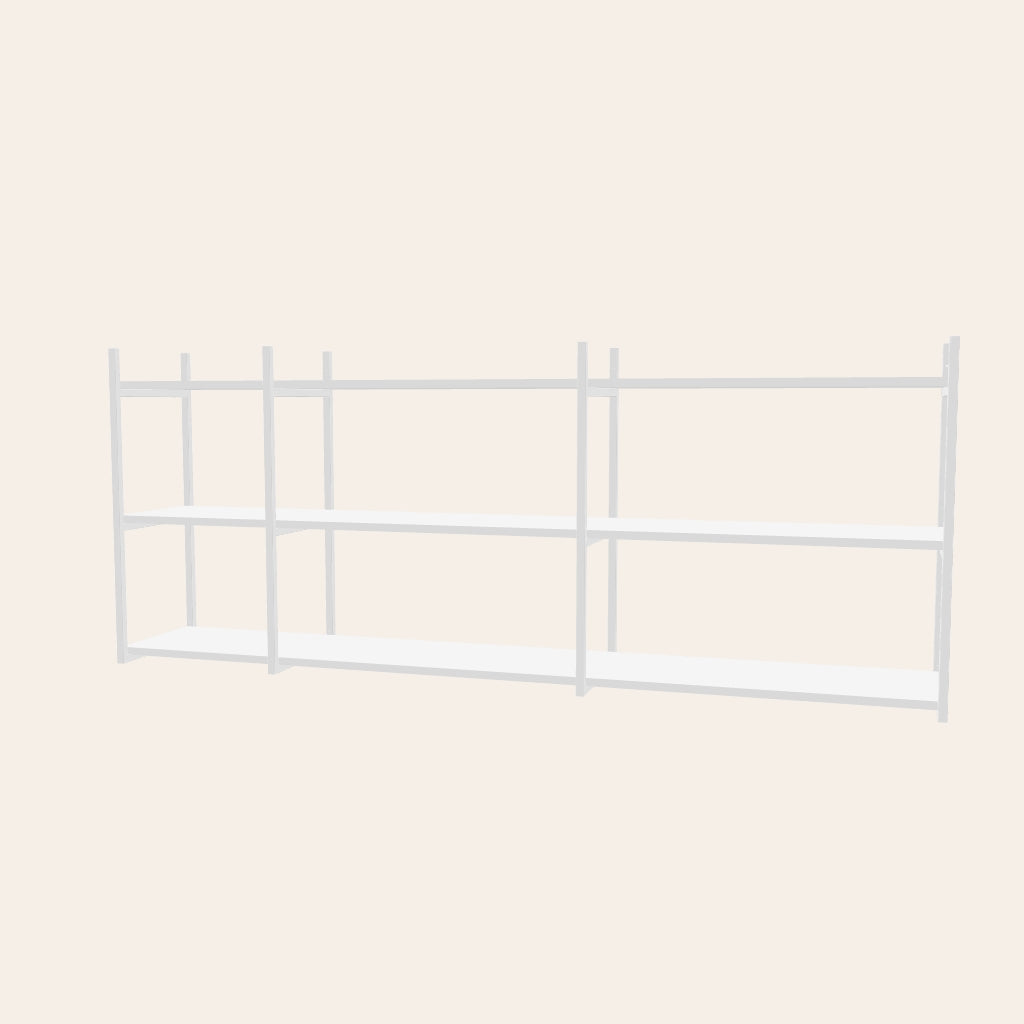 Vägghängd öppen hylla i färgen vit, perfekt för kök, vardagsrum eller barnrum. Komplettera med en klädstång för att hänga upp allt från köksredskap till kläder, en lekfull lösning för praktisk förvaring. Denna kombination är 201 cm bred.